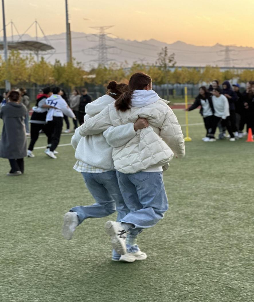 比赛也带动了同学们的情绪,她们纷纷在旁热情呼喊,在加油呐喊声和欢笑声中,班级融为一体。“运动使人充满生机活力,现在,快乐肉眼可见的溢满了整个操场。”23级辅导员吴奇老师如是说。