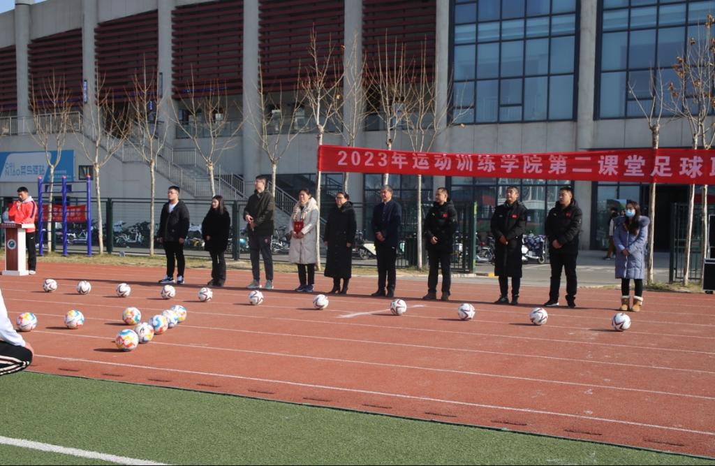 为了丰富学生的第二课堂生活,提高我年级学生对足球的热情和组织实践能力,2023年12月26日,运动训练学院2022级第二课堂教学实践足球联赛拉开帷幕。院长武洛生、党委书记王鑫、党委副书记王青、副院长郑峰、柴王军、办公室主任刘志云、足球教研室主任马俊、22级年级主任于昕、23级年级主任罗玄、辅导员李丹、吴奇参加了开幕式。