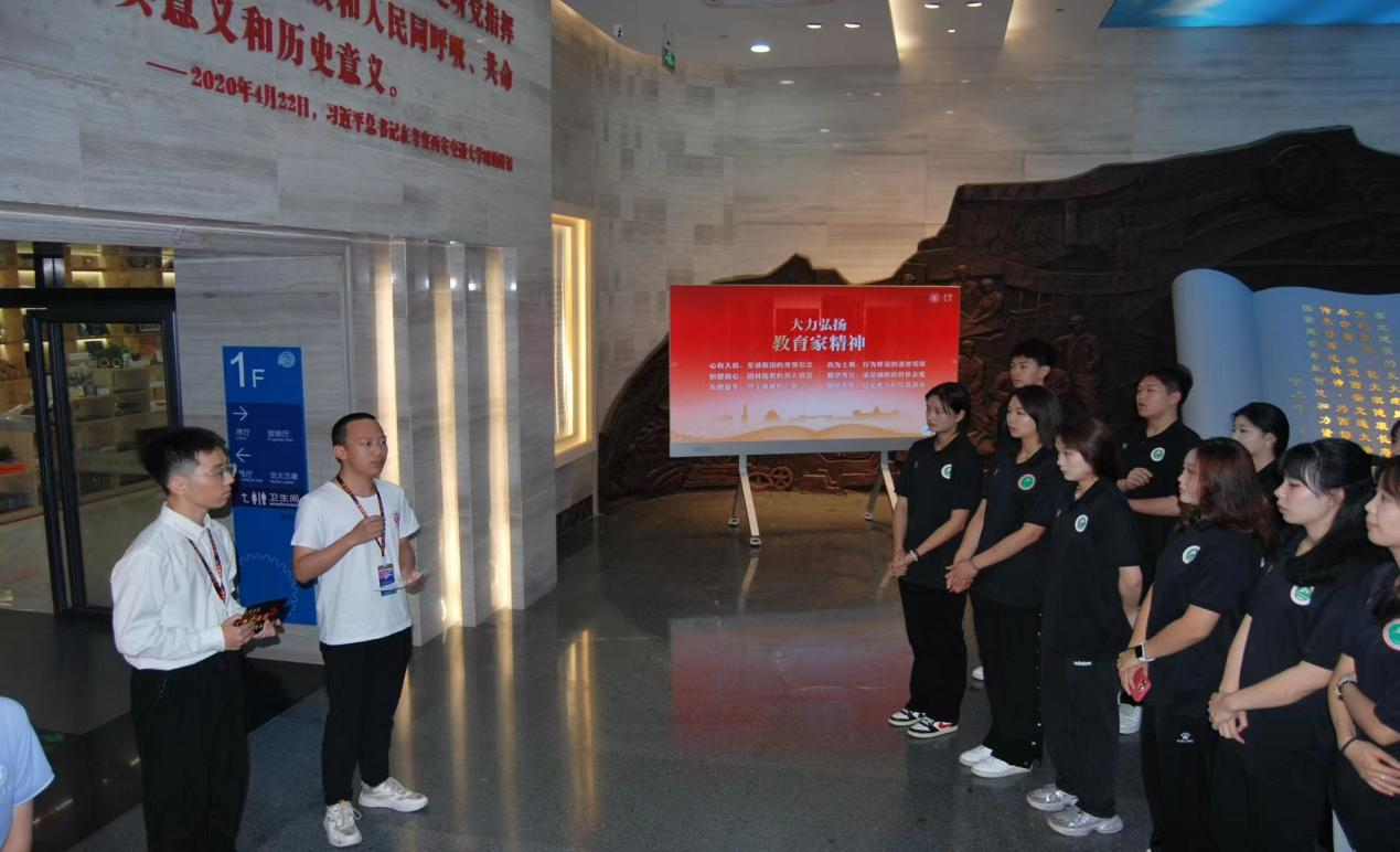随后,两校学生共同进行红色文化交流活动。彭康书院讲解员带领实验班学生参观并讲解了西迁历史博物馆,同学们一起深入学习了西迁精神。接着参观交大校园,领略交大校园文化。在随后的交流座谈中,实验班同学们结合自身专项向交大学生展现了体育魅力,传播了体育精神。