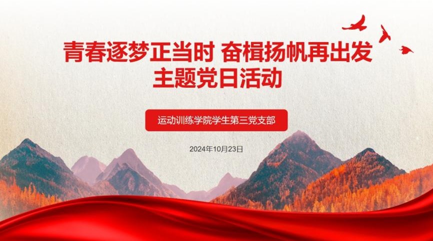 2024年10月23日,运动训练学院学生第三党支部在棒球馆201教室举办了“青春逐梦正当时 奋楫扬帆再出发”主题党日活动。2022级辅导员吴奇、学生第三党支部全体党员和入党积极分子参加了活动。