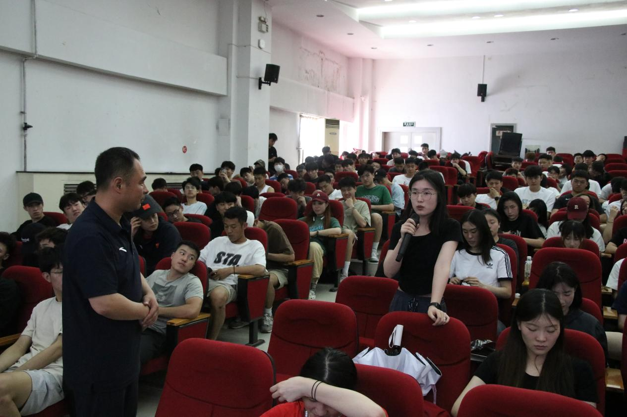期间,韩博老师还和与会的同学们进行了互动提问,大家对于如何成为、做好一名合格的体育老师进行了激烈提问、讨论,韩博老师也有条不紊的一一回答同学们提出的问题。