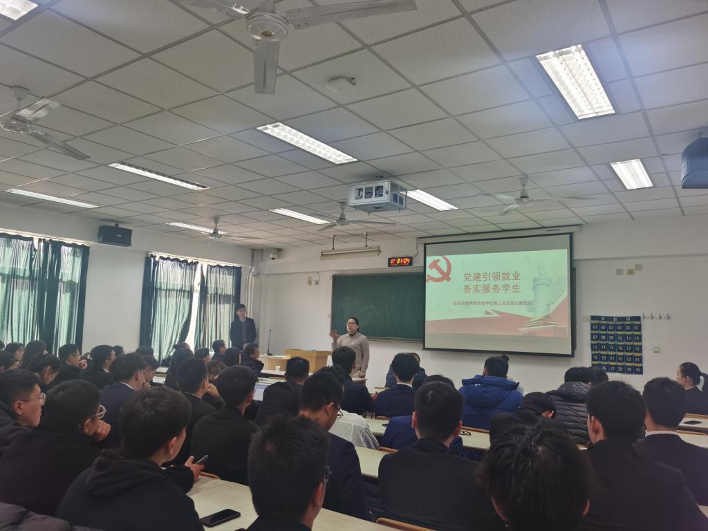 于昕首先向同学们介绍、梳理了学院针对本届毕业生就业工作的整体安排及此次主题党日的主要目的。