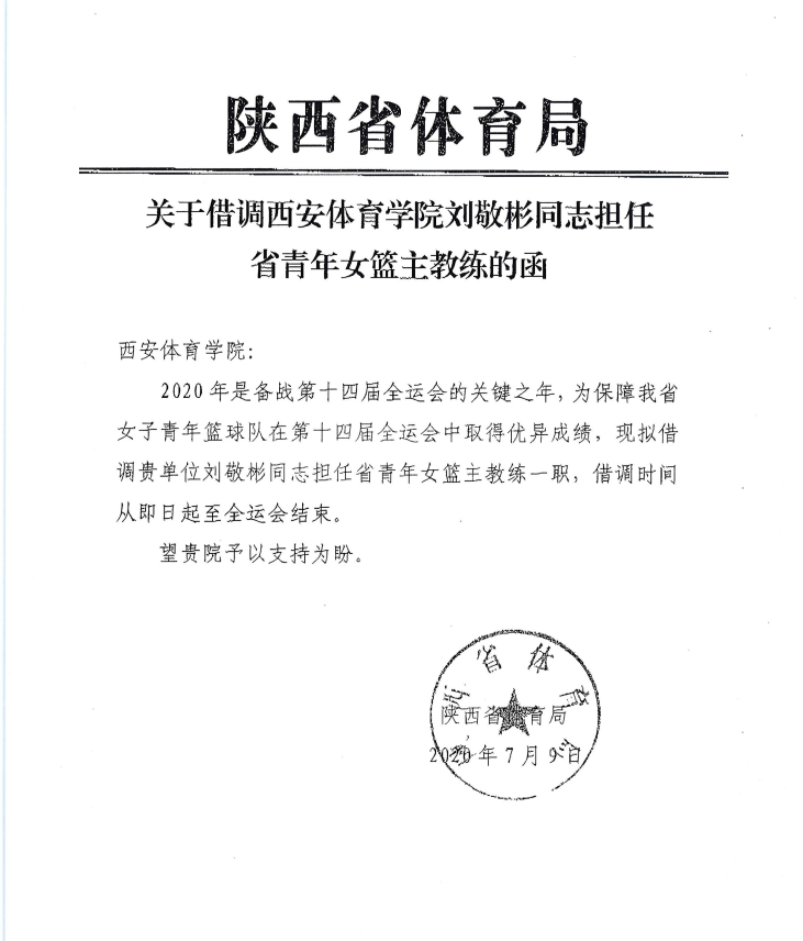 我院教师刘敬彬担任省青年女篮主教练