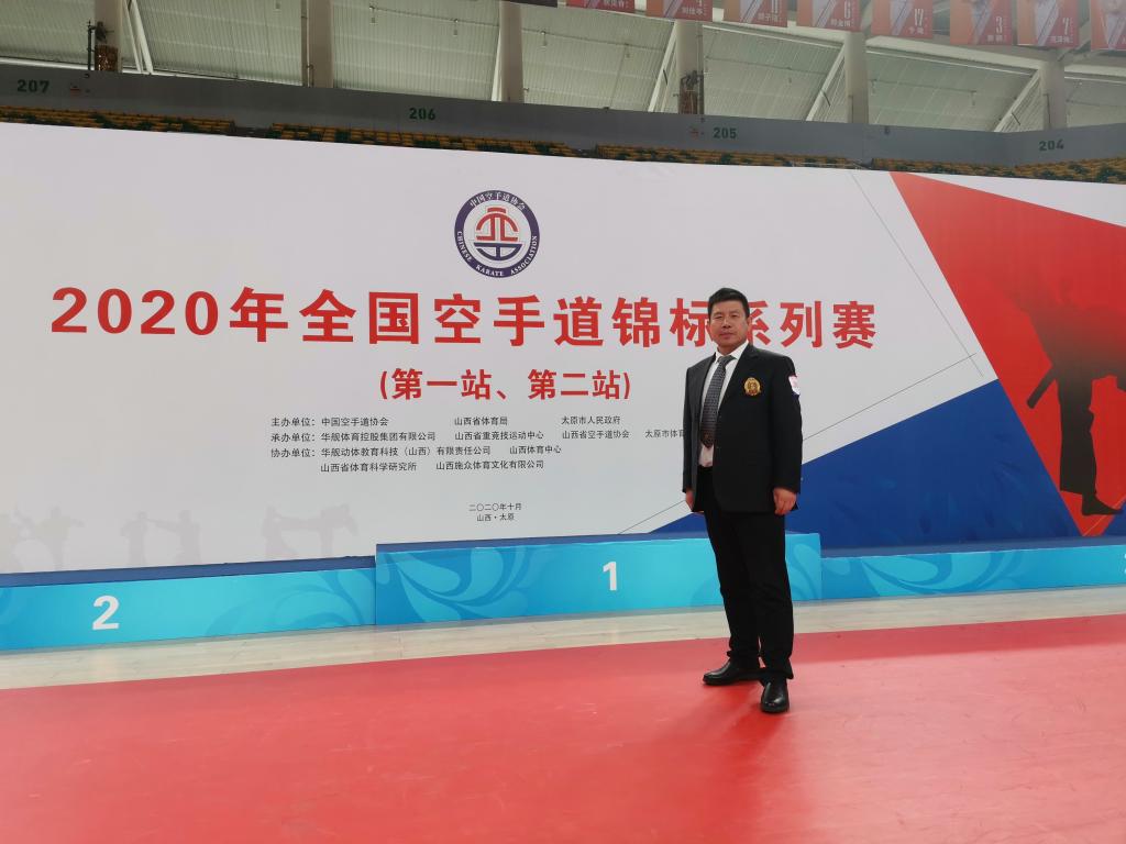 2020年全国空手道 A类赛暨第十四届全运会积分赛于2020年921日至9月30日在山西体育中心体育馆举行,我院重竞技教研室教师马波受中国空手道协会委派,参加本次执裁工作,与其他裁判员密切合作,圆满完成本次工作。