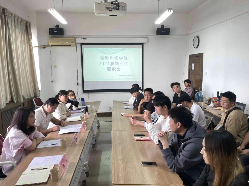 为进一步提高运动训练学院2024届毕业生就业质量和就业竞争力。4月9日上午,运动训练学院在综合训练馆六楼召开2024届毕业生就业工作座谈会,学院党委书记高月宏、副书记王青、研究生辅导员王慧颖、20级年级主任雷璇、辅导员黄环及毕业生代表参会。会议由高月宏主持。