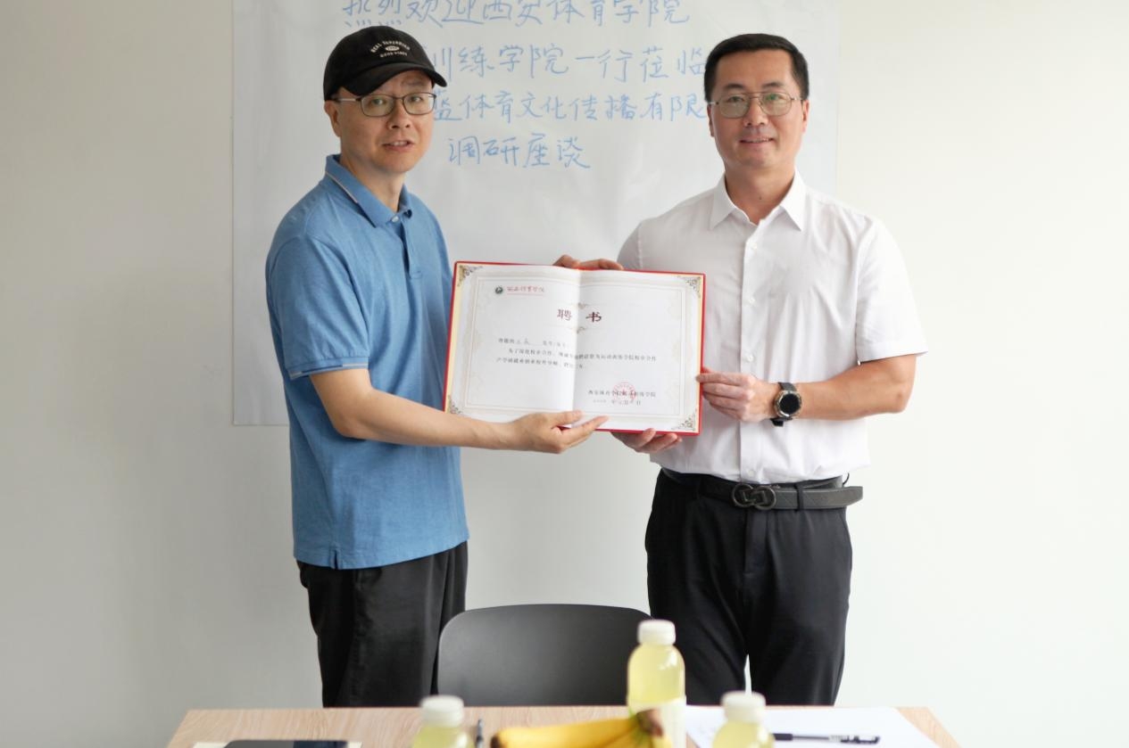 高月宏向陕西美蓝体育文化传播有限公司董事长王焱颁发校外导师聘书