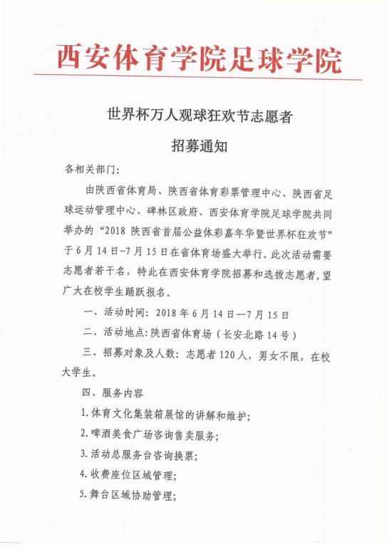 世界杯万人观球狂欢节志愿者招募通知