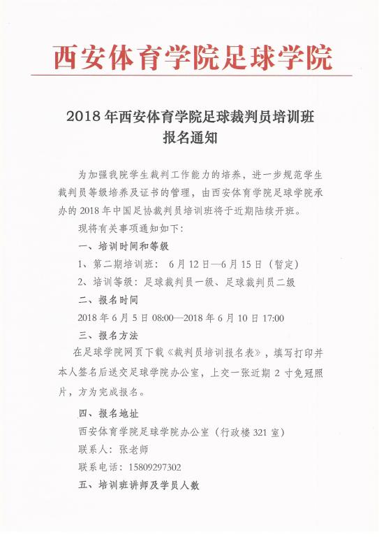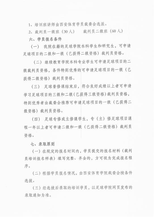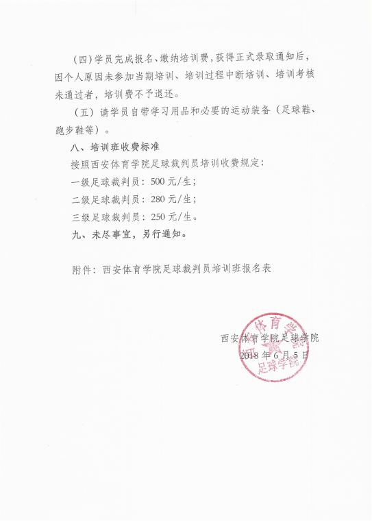 2018年西安体育学院第二期足球裁判员培训班报名通知