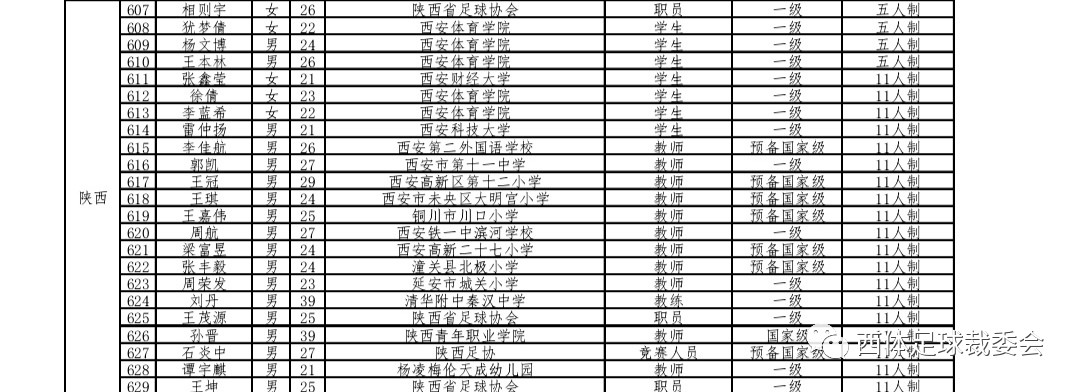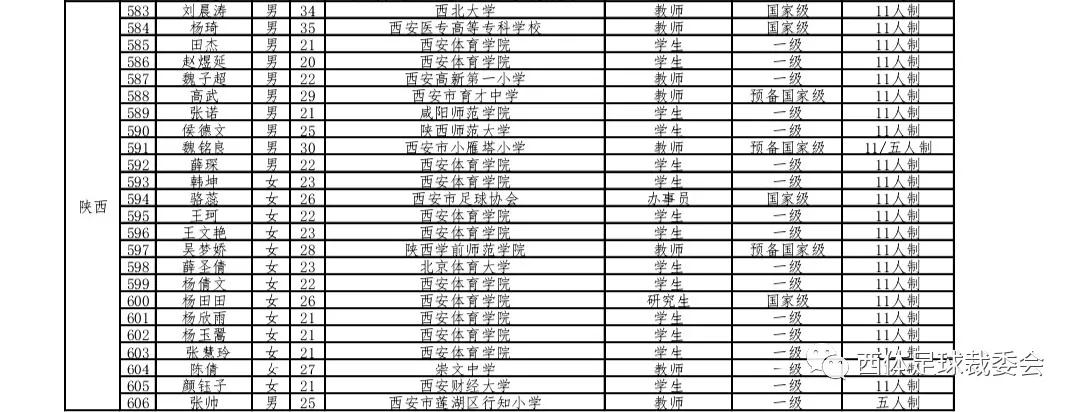 经过多年来西安体育学院的培养和推荐,陕西省足球协会和西安市足球协会的关心与支持,陕西省学生体育协会的大力扶持,我院共有16人先后参加了中国大学生体育协会的足球裁判员培训并顺利通过考核。