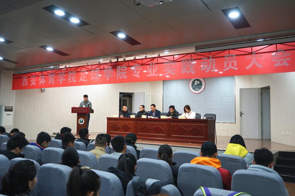 12月15日,西安体育学院足球学院在教学楼一楼报告厅召开学期专业实践动员大会。足球学院院长朱军、陕西浪潮足球俱乐部总经理常伟、足球学院特聘教授杨钢、足球教研室主任席海龙、辅导员南腾、金梦丹和足球学院全体学生参加了此次会议,会议由南腾主持。