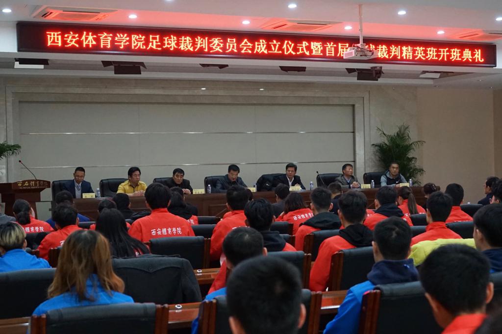 西安体育学院是全国高等院校第一家成立足球裁判委员会的院校。成立大会上,陈彦副院长代表学校发表了重要讲话。