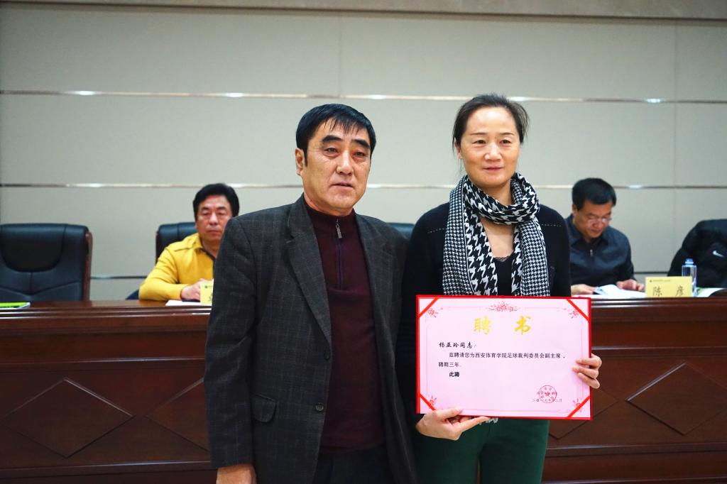 西安体育学院足球裁判委员会副主席杨亚玲颁发聘书