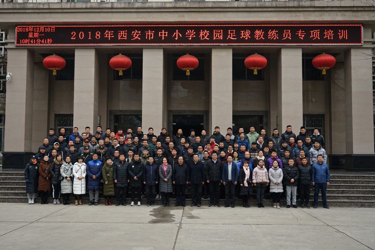2018年12月10日至14日,由西安市教育局主办的“2018年西安市中小学校园足球教练员培训班”在西安体育学院进行,共有来自西安市中小学的100名校园足球教练员参加了为期五天的培训。西安市教育局副局长闫秀斌、西安市教育局体育卫生与艺术处处长高红、正处级调研员杨勇、副处级调研员薛明强、陕西省足球协会竞赛部部长王汇杨、西安体育学院副院长陈彦等领导和授课教师出席了开班典礼。西安市教育局体育卫生与艺术处高红处长宣读了关于教育部办公厅同意西安等城市设立全国青少年校园足球改革试验区的相关文件。陕西省足球协会支持通过校园足球教练员培训,使培训与裁判员晋级相结合,为校园足球培养更多裁判员。并由西安体育学院足球学院在本期培训中遴选了19名学员进行培训,顺利晋级为国家二级足球裁判员。