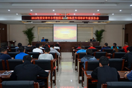 2019年9月23日上午,由西安市教育局主办的“2019年西安市中小学校园足球教练员培训班”在西安体育学院开班,共有来自西安市中小学的100名校园足球教练员参加为期五天的培训。西安市教育局副局长闫秀斌、西安市教育局体育卫生与艺术处处长高红、副处级调研员薛明强、西安体育学院纪委书记赵军等领导和授课教师出席了开班典礼。西安体育学院足球学院副院长席海龙主持。