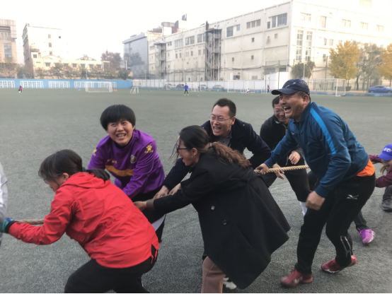 为丰富教职工的业余文化生活,11月20日下午,足球学院全体教职工拔河比赛在足球场举行。