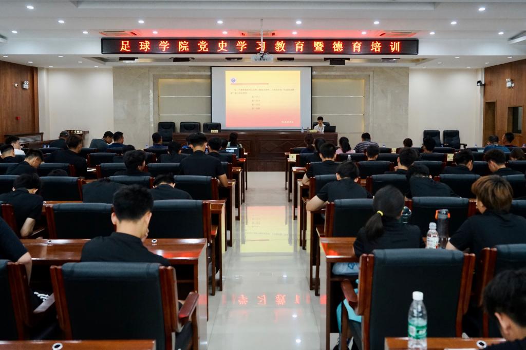 为使我院党史学习教育走实走深,根据《教育部关于在教育系统开展师德专题教育的通知》中“强化教师‘四史’学习教育,将‘四史’学习作为广大教师思想政治‘必修课’,结合建党百年系列庆祝活动,以党史学习教育为主线,强化‘四史’学习教育”、“用身边的榜样传递师德的力量 ”等精神,6月9日中午,我院在二号行政楼六楼报告厅举办“学党史 悟思想 立师德 铸师魂”主题教育培训。讲座邀请到西安体育学院马克思主义学院教授、陕西省师德标兵张美娥为学院全体教职工及学生党员、入党积极分子讲述百年党史及教师立德树人,会议由足球学院党总支书记姜梅主持。