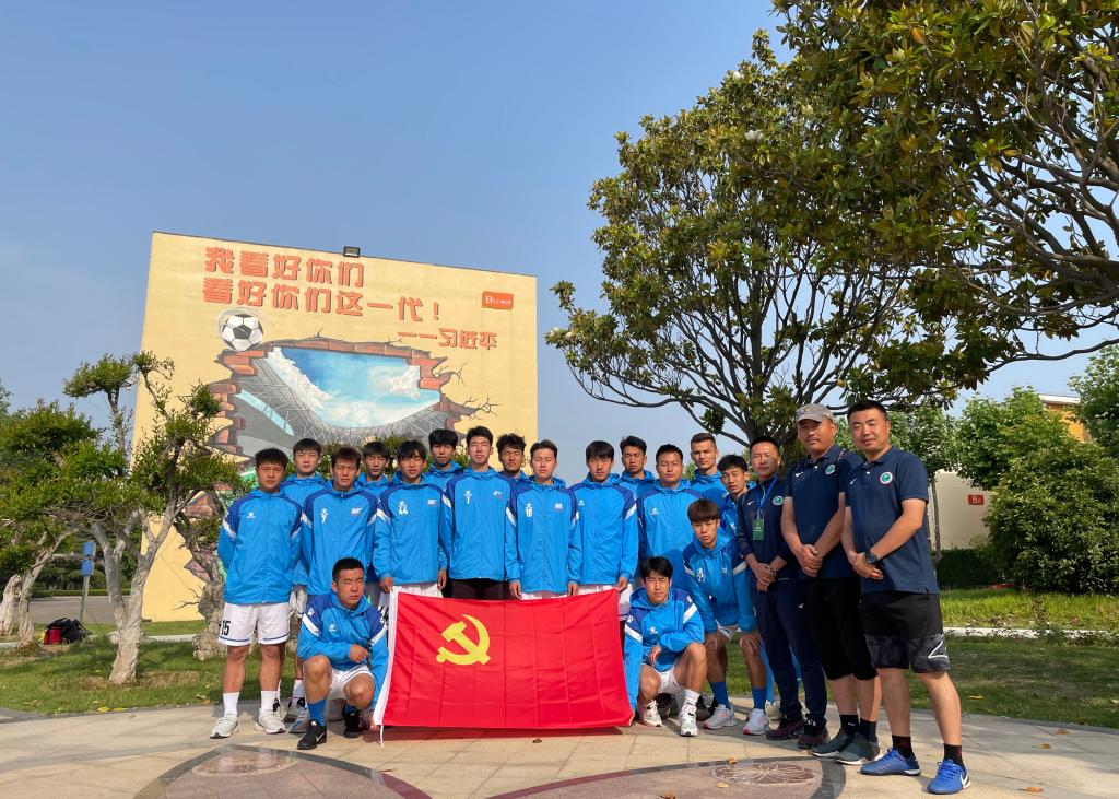 为深入推进党史学习教育,全面掀起学习党史的热潮、加强全体队员的思想政治素养,西安体育学院男子足球代表队在参加2021年全国青少年校园足球联赛(大学组)高水平男子乙级联赛期间,利用比赛休息日在山东鲁能足球基地开展“学党史 知党恩 跟党走”主题党日活动,一起重温党的百年历史。