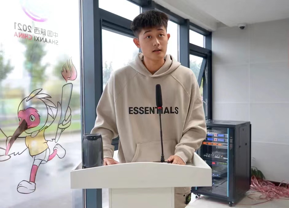 2021级教研组组长孙航作为教师代表进行了发言,他希望同学们做一个有道德的人、一个爱学习的人、一个坚强的人、一个负责任的人。2020级学生程进啸和2021级学生田泽龙分别代表老生和新生进行发言。