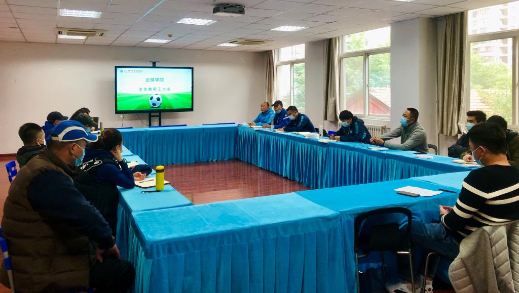 10月20日,足球学院在二号行政楼406会议室召开了2021—2022学年第一次全体教职工大会。会议由院长席海龙主持。