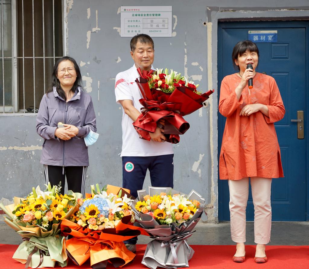 4月29日中午,足球学院为王洪武老师在足球场举办了荣休仪式,校党委副书记、纪委书记赵军出席,校工会副主席张建武、离退休工作处处长杨毅谋、二级教授黄谦博士、运动训练学院处级组织员宋文杰、足球学院党总支书记姜梅、足球学院院长席海龙、足球学院副院长方程以及足球学院师生参加了仪式,仪式由足球学院党总支书记姜梅主持。