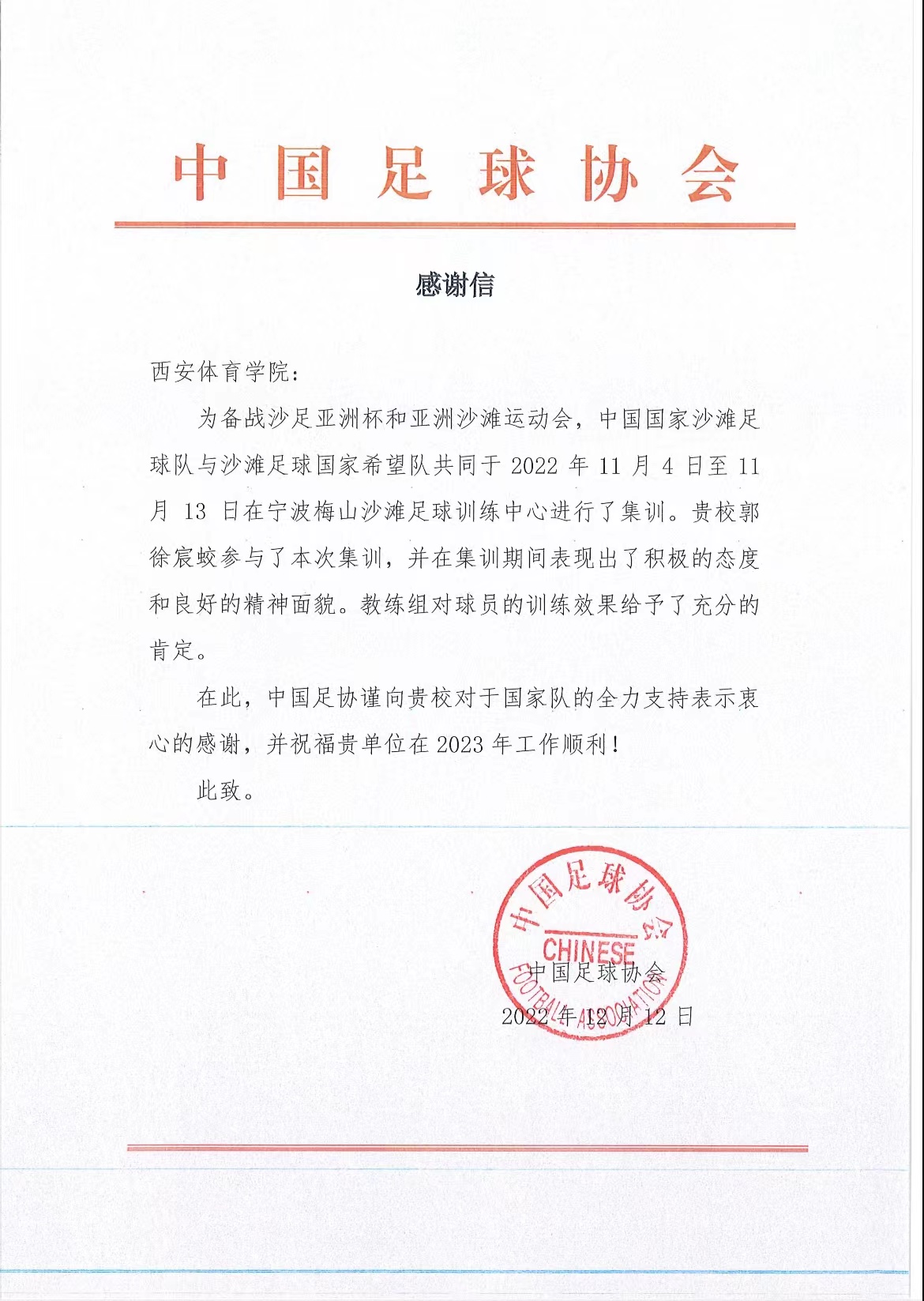 我院学生郭徐宸蛟获中国足协高度赞扬
