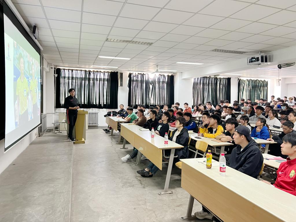 为进一步丰富学生第二课堂活动,提升学生专业技能,我院特邀北京体育大学足球学院教师,曾执法法国女足世界杯的国际级足球裁员秦亮于4月10日上午10点在教学楼202教室做了题为《我的世界杯之路》的专题讲座。足球学院部分教师,2020级、20201级学生参加了讲座。讲座由院长席海龙主持。