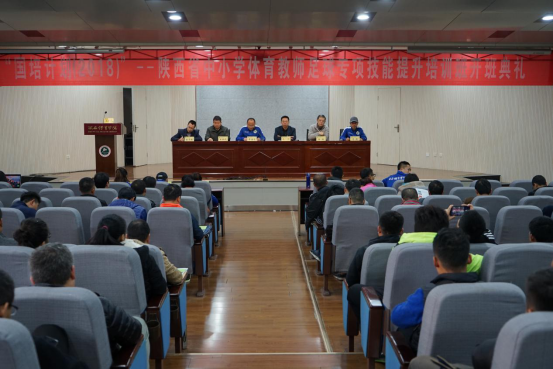11月11日上午,“国培计划(2018)”——陕西省中小学体育教师足球专项技能提升培训班在我院顺利开班。足球学院院长朱军,足球教研室主任席海龙,副主任马俊,足球学院常务顾问杨钢以及足球学院教师出席了开班典礼。此次培训从11月10日至11月16日,为期7天,共有来自全省各中小学校的200名体育教师参加。