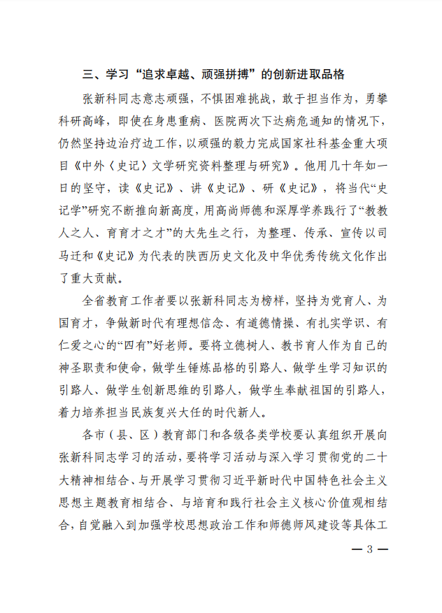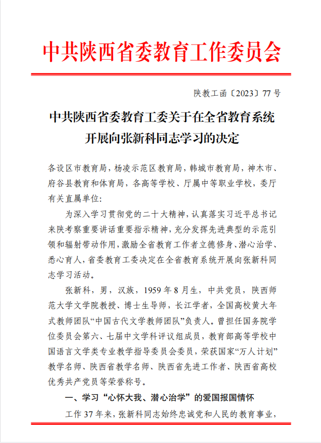 中共陕西省委教育工委关于在全省教育系统开展向张新科同志学习的决定
