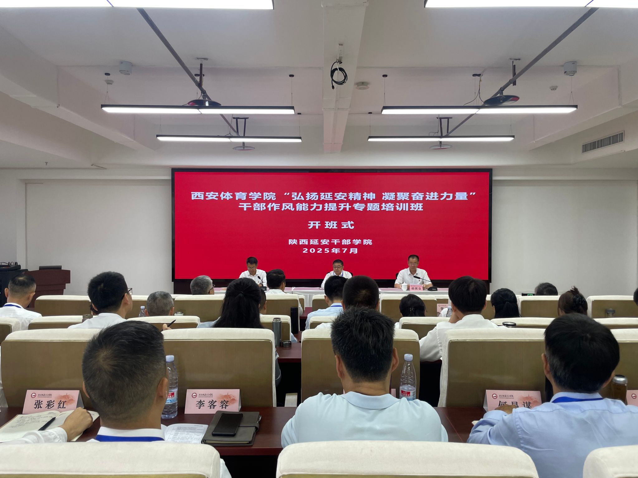 开班仪式上,延安市委常委、组织部长、陕西延安干部学院院长胡统金和我校班子成员出席。党委书记刘子实指出,加强干部作风建设,提升干部综合素质,是当前干部队伍建设的重要政治任务。要结合深入贯彻中央八项规定精神学习教育,弘扬延安精神,汲取信仰力量,校准前进方向,自觉在学思践悟、查摆整改中明方向、学方法、增智慧、转作风、提能力,不断提高推动高质量发展和服务师生工作水平。要始终坚持把弘扬延安精神与深化干部作风能力提升、打好“十大攻坚战”、推进年度重点工作相结合,把心思用在谋发展上,把才智用在解难题上,把精力用在抓落实上,用心用情用力解决好师生的急难愁盼问题,切实以党的光荣传统和优良作风推动学校高质量发展迈上新台阶。一是强化理论武装,着力提升政治能力。坚定理想信念,把准政治方向,提升“政治三力”,锤炼坚强党性,加强政治历练,淬炼过硬本领。要对标对表,锚定第七次党代会“15229”的发展路径、十四五收官和十五五谋划、十大攻坚战、博士点申报等工作目标,发扬钉钉子精神,凝心聚力,把一项项指标变为现实。二是落实“五个进一步到位”要求,推动学习教育走深走实。全校各级党组织要切实扛牢主体责任,发扬自我革命精神,对学习教育查摆的问题清单进行再梳理、再分析、再完善,一体推进学查改。校纪委要做实专责监督,做到严于律己、严负其责、严管所辖。三是端正学习态度,严守培训纪律。全体学员要潜心学习、深学细悟、善于思考、严守纪律,争当表率。要带着使命学、带着责任学、带着感情学,在延安精神中接受思想洗礼、汲取信仰力量、筑牢信仰之基、补足精神之钙、把稳思想之舵。